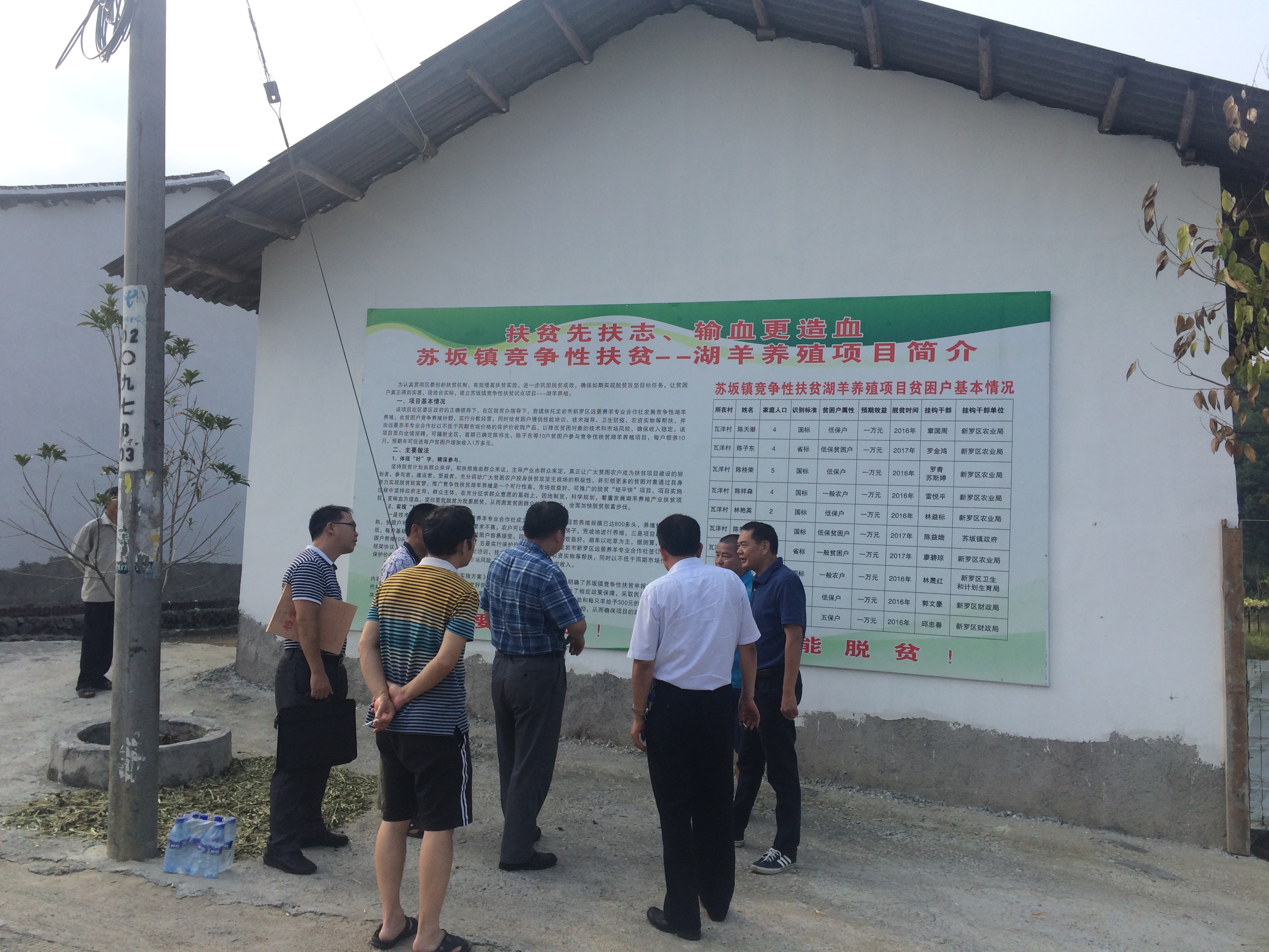 9月21日下午,省社会扶贫与山海协作处陈道清处长、市脱贫办常务副主任张木生等一行到苏坂镇瓦洋村察看竞争性扶贫湖羊养殖项目试点。