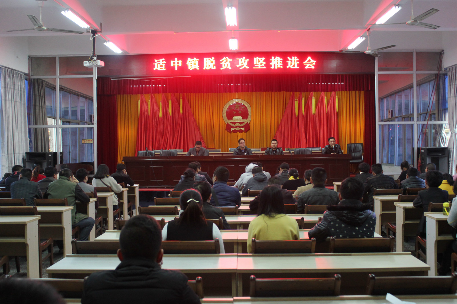 11月24日,适中镇召开脱贫攻坚推进会,安排部署全镇脱贫攻坚工作、扶贫小额信贷工作。全镇干部参加会议。