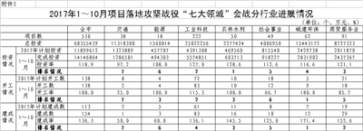 1~10月,530个“七大领域”会战项目完成投资1414.7亿元、同比增长31.8%,占年度计划1190亿元的118.9%;实现开工建设项目138个,占年度计划138个的100%;建成或部分投产项目154个,占年度计划113个的136.3%。具体情况如下: