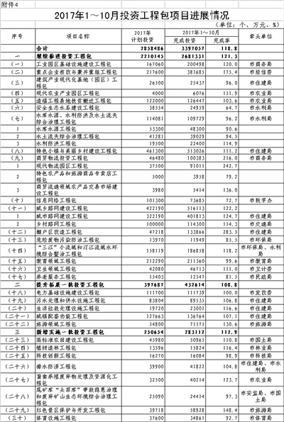 3.开工一批。全市实现开工建设项目138个、同比下降31.7%,占年度计划138个的100%。其中,重点项目开工建设85个、行动计划重大项目开工建设13个、工业技改项目开工建设40个。