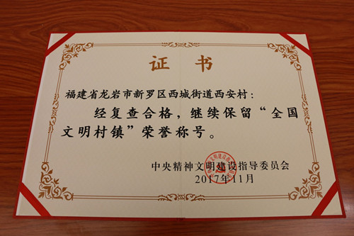 日前,中央文明委《关于复查确认继续保留荣誉称号的全国文明城市、文明村镇、文明单位的通报》发布,龙岩市新罗区西城街道西安村(社区)榜上有名,确认继续保留全国文明村镇荣誉称号,荣膺“全国文明村镇”五连冠。